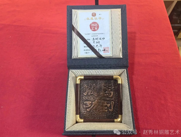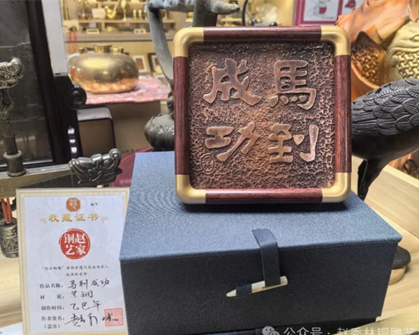 从原料甄选到加热塑形,从精雕细琢到冷却成型,赵家铜艺作坊的匠人们以传承百年的铜雕技艺积淀,在方寸紫铜之上精研每一处细节。作品不仅是一件承载新春祝福的文创艺术品,更让传统铜雕工艺在马年迎新的语境中焕发出新的生机,为即将到来的丙午新春增添了一抹浓郁的传统工艺色彩。无论是置于案头点缀岁时,还是作为礼赠传递心意,这件《马到成功》都以铜为媒,将“策马扬鞭、顺遂如意” 的美好期许凝于方寸之间,成为连接传统技艺与当代生活的温暖载体。