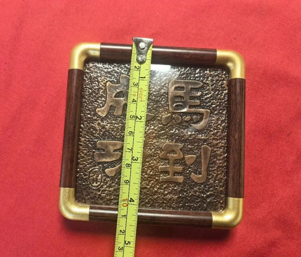 该作品坚守传统锻铜技艺精髓,全程以手工打造:匠人将质地温润、色泽醇厚的紫铜(纯铜)板精准加热至适宜温度,使铜板质地变软具备可塑性,再凭借娴熟的捶打、錾刻、塑形技艺,让铜料随匠心渐成雏形。待自然冷却后,铜板恢复坚实质感,一件兼具造型美与工艺美的锻铜作品便初现轮廓,每一道细密的捶痕都凝聚着手工技艺的温度。作品尺寸精巧为 11.5cm × 11.5cm,搭配中式方形外框,镜框的温润与金属的厚重相得益彰,既强化了中式器物的典雅气质,也便于收藏、陈设与礼赠。