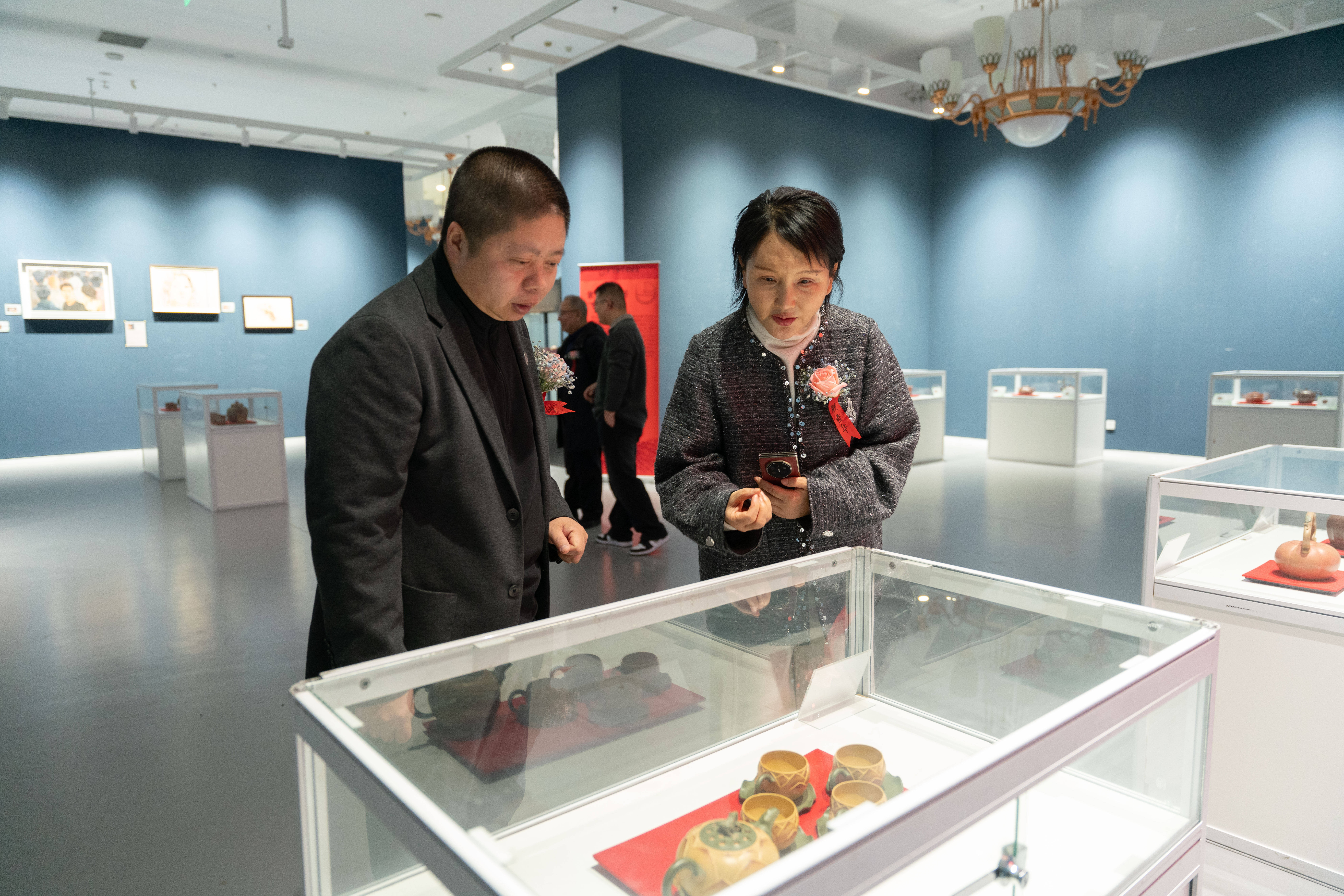 开幕式后,大家有序进入展厅参观,或俯身凑近展柜,细细揣摩以刀代笔的精妙之处;或举起手机定格画面,将触动心灵的艺术瞬间留存。整个展厅浸润在浓厚的艺术氛围中,每一件紫砂作品都成为连接艺术与群众的精神纽带,让“大国陶瓷”的展览主旨在此刻生动落地。