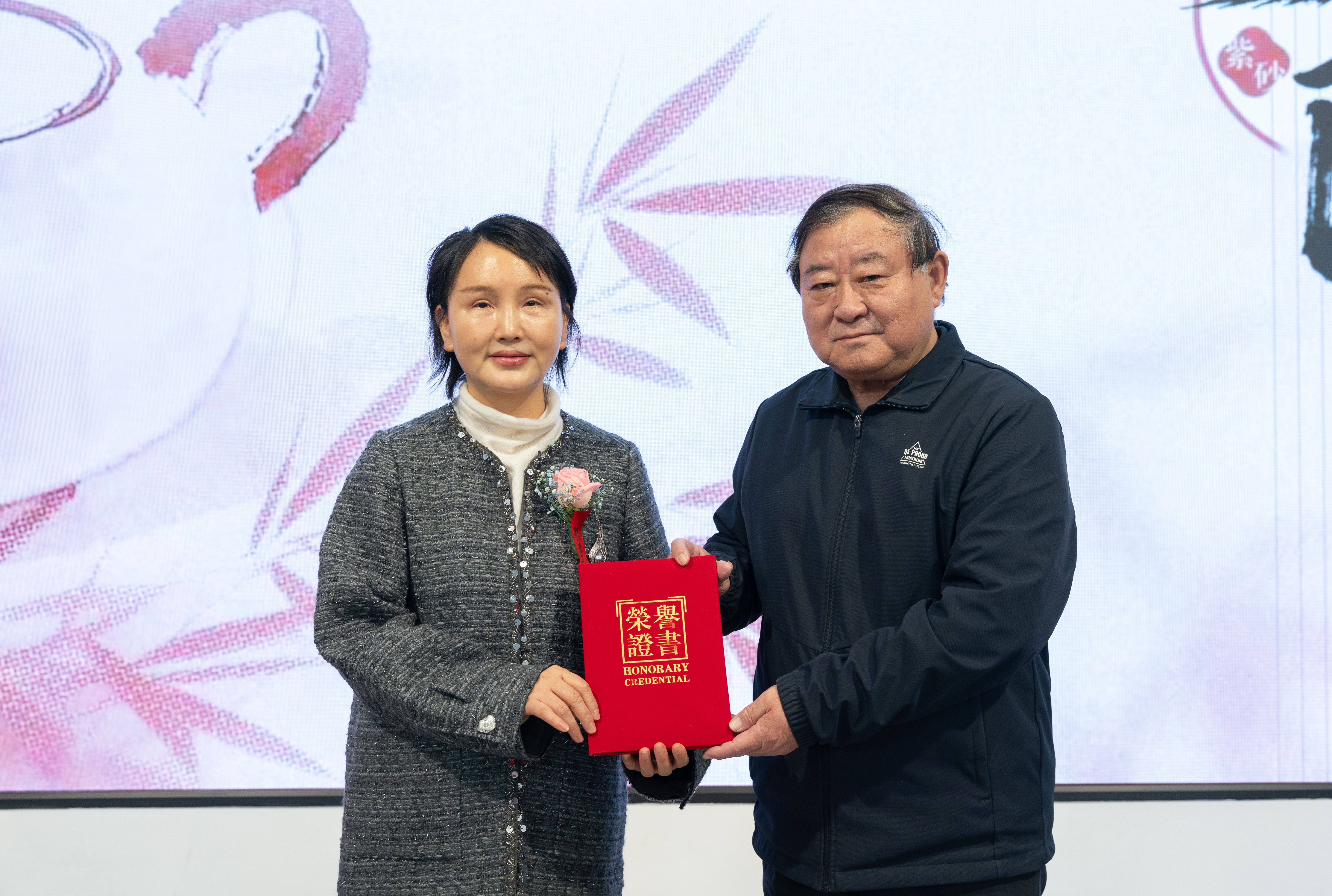 活动现场,为表彰耿春华老师在发展辽宁陶瓷艺术与设计事业中做出的突出贡献,辽宁省委宣传部原常务副部长常卫国为其颁发了“辽宁省陶瓷艺术大师”荣誉证书。两地陶协负责人分别致辞,强调将坚守文化使命,赓续时代文脉,共同努力,推动辽宁、江苏陶艺队伍薪火相传、生生不息, 助力工艺美术事业蓬勃发展。此次展览汇聚了以宜兴紫泥春华博物馆馆长、资深陶艺家耿春华老师为主的近百余件精品力作,全面展现了作者深厚的艺术底蕴与学术传承。展览的成功举办,不仅为观众搭建了感受紫砂魅力的高端平台,更激励两地陶艺工作者在艺术道路上坚守初心、砥砺深耕,努力创作更多讴歌时代精神的精品佳作。