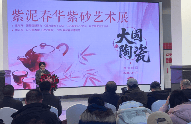 新年伊始元月6日,由国务院新闻办《城市漫步》杂志、辽宁、江苏省陶瓷行业协会主办,辽宁美术馆、宜兴紫泥春华博物馆承办的“大国陶瓷∣紫泥春华紫砂艺术展”在辽宁省美术馆(辽宁画院)启动,至此也拉开了2026紫泥春华紫砂艺术全国巡展的序幕。沈阳市委宣传部、辽宁省广电艺术家协会、辽宁省美协、省书协、省教育家协会、辽宁大学、鲁迅艺术学院相关负责人等出席开幕式。