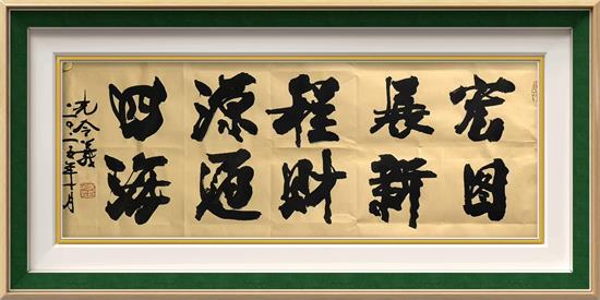 这种创新书体并非简单的形式变革,而是基于对书法史演变的深刻研究和洞察,正如中国历史上每个鼎盛时代都会孕育新的书体,孔令义的新行楷体书法突出字体上的四角饱满,正大方正,昂首挺立。笔划上又采用隶书、楷体、行书笔划优长,走笔自如潇洒,克服古法用笔的呆板,笔法雄健有力,以入木三分之功体现新时代气质,是对当代中国精神风貌的艺术凝练。