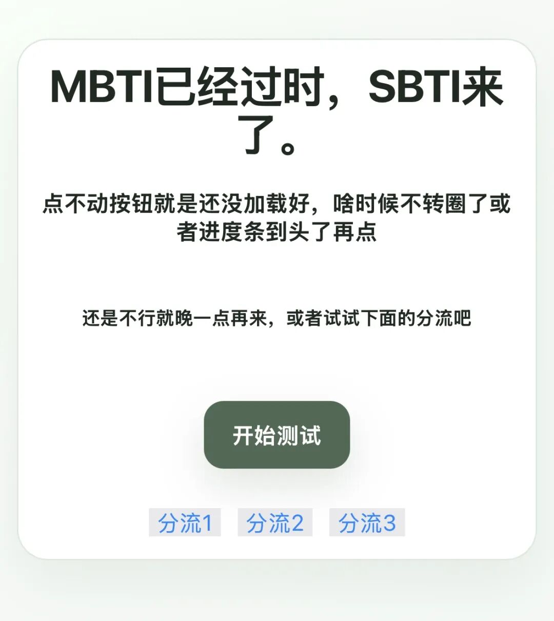 但是由于突然的爆火,致使大量用户页面崩溃、链接打不开,只能靠截图云体验,可见大家也对自己的的"SBTI"非常好奇。但是在爆红的背后也折射出年轻人对抗内卷、寻求情绪释放的需求,用戏谑方式消解刻板人格标签与生活压力。